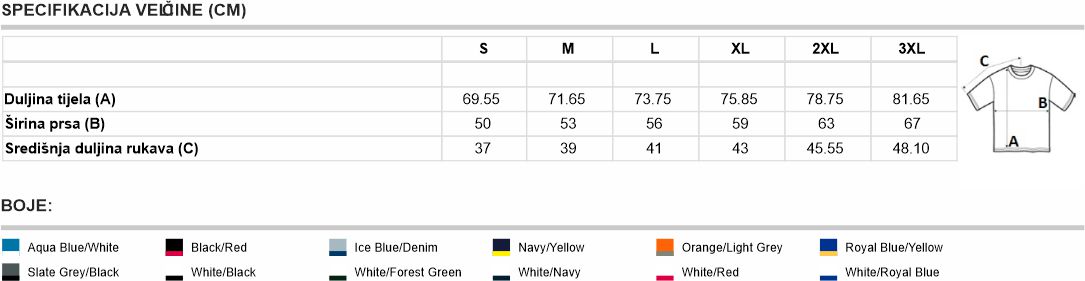 • Majica kratki rukav, okrugli ovratnik, dvobojna